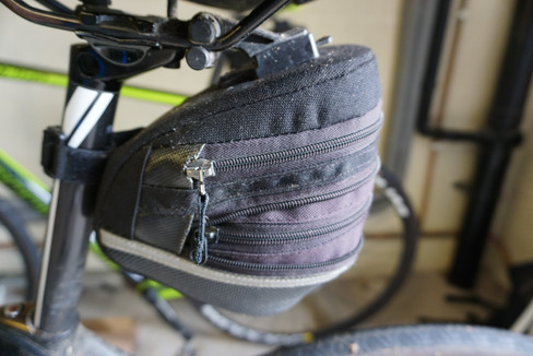 Fel y gwelwch o'r ddau lun uchod, mae'r cyfrwy-fagiau yn dod ym mhob lliw a llun. Mi wnes i dipyn o ymchwil ar gyfer f'un i sef yr un Castelli a hwnnw'n ddigon i gario levers, tiwb, pwmp, multi-tool a snac argyfwng tra ddim yn edrych yn fler na'n tanseilio edrychiad y beic. (Yndw, dwi'n un o'r rheiny sy'n ymwybodol o aesthetig). Dydy hwn ddim ymysg y lleiaf y gallwch chi ei gael, na'r rhataf o ran hynny chwaith, ac mae'r un sydd gen fy rhieni yn y llun arall (un Topeak) yn dipyn mwy ac felly'n galluogi cario'r got hefyd. Ffactor arall i'w ystyried yw'r modd y mae'n cysylltu a'r beic; er enghraifft, mae rhai Topeak fel arfer yn cynnwys gosodiad penodol cynwysiedig sy'n hwyliso'r broses o'i gymryd i ffwrdd ac yn ol ymlaen. Mae eraill, fel f'un Castelli i, yn cysylltu efo strapiau i'r cyfrwy ac hefyd i'r cyfrwy-bostyn (seatpost).